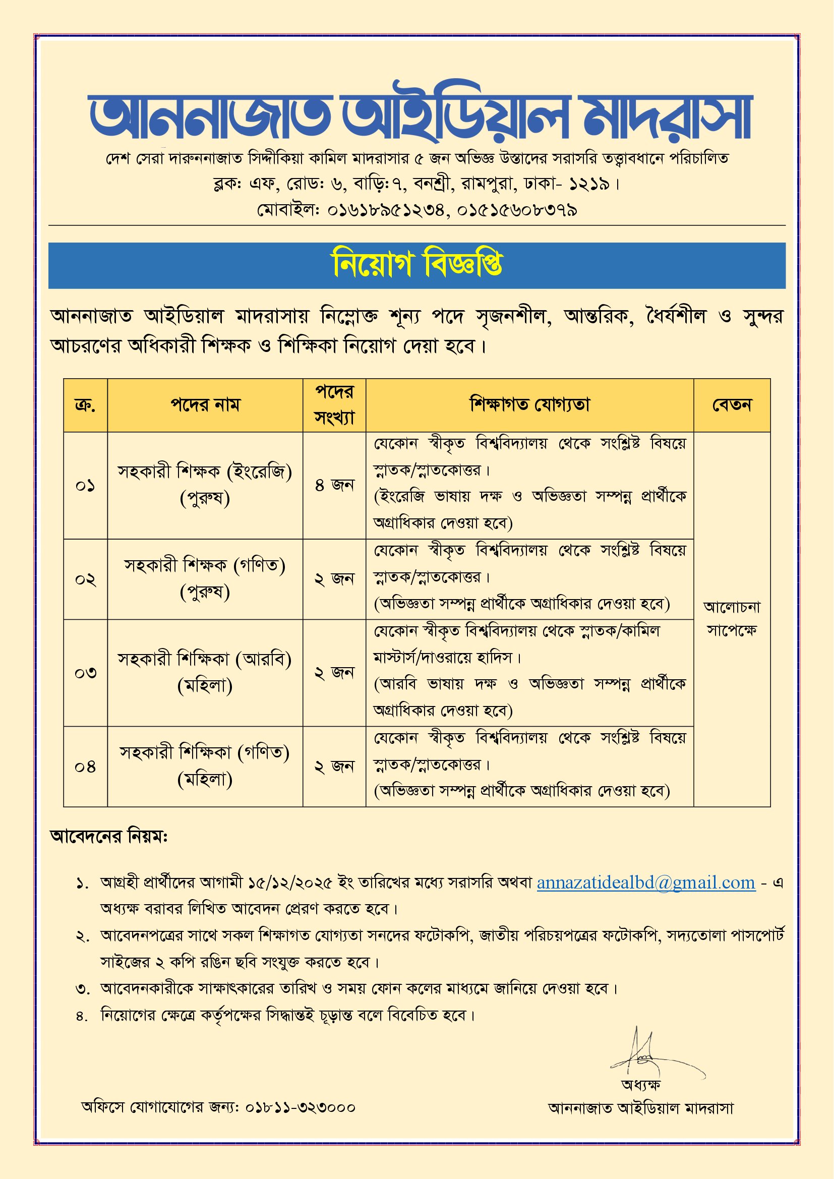 আননাজাত আইডিয়াল মাদরাসায় আপনাকে স্বাগতম